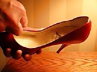 Cumming in red toe cleavage pump