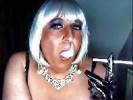 Chrissie smoking a 120 in a sexy pvc maids dress