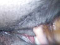Playing with her wet black pussy