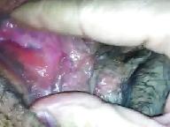 Wifes hairy asscrack, hairy pussy in black silk pantys