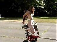 Humiliated whore machine fucking in public