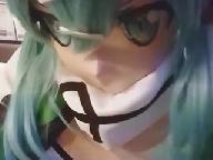 Kigurumi girl in latex and breathplay with vibrator