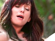 Lascive babe rubbing her cunt in forest