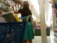 Nice shot up her skirt at the dollar store - bare ass!